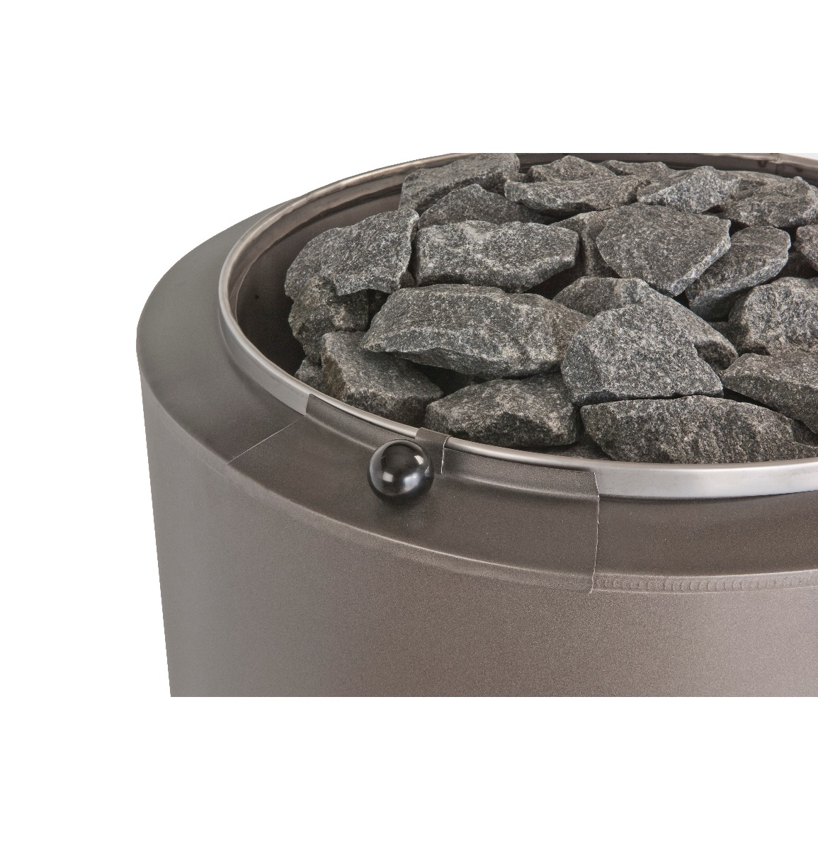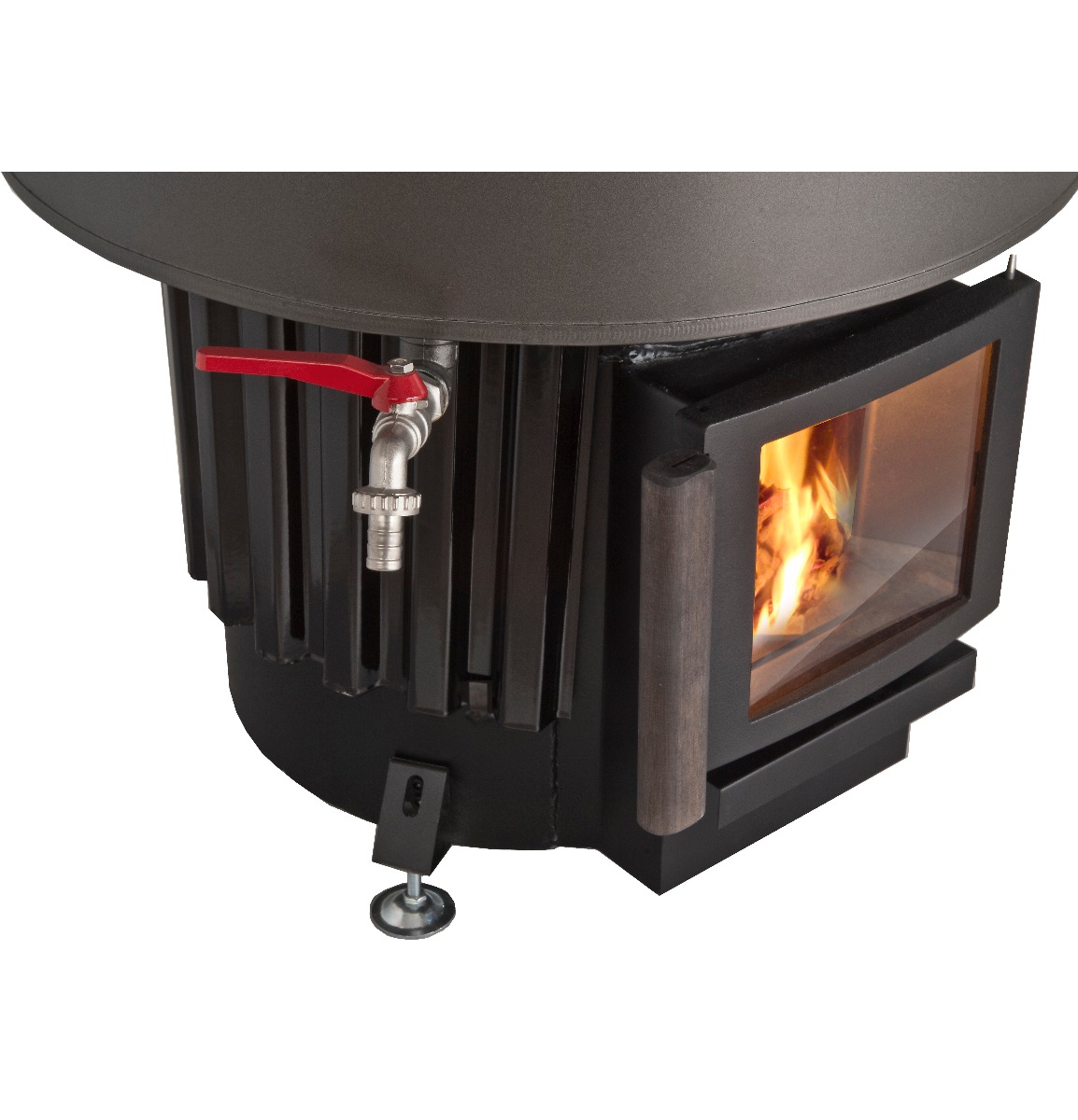 Pyöreän muodon ansiosta kiuas on erittäin kestävä ja se voidaan sijoittaa saunaan kuin saunaan. Lasinen luukku luo tunnelmaa ja helpottaa tasaisen tulen ylläpitämistä. Vesisäiliö on asennettavissa niin, että hana saadaan juuri haluttuun kohtaan. Säiliön tilavuus on 30 litraa.