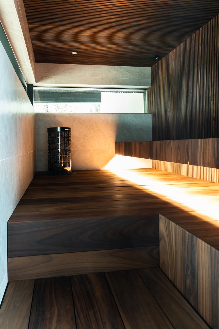 Parhaan lopputuloksen saat aikaan parafiiniöljyllä tai saunavahalla. Parafiiniöljy korostaa paneelin eri sävyjä. Kuvissa olevat saunanlauteet ovat käsitelty parafiiniöljyllä.