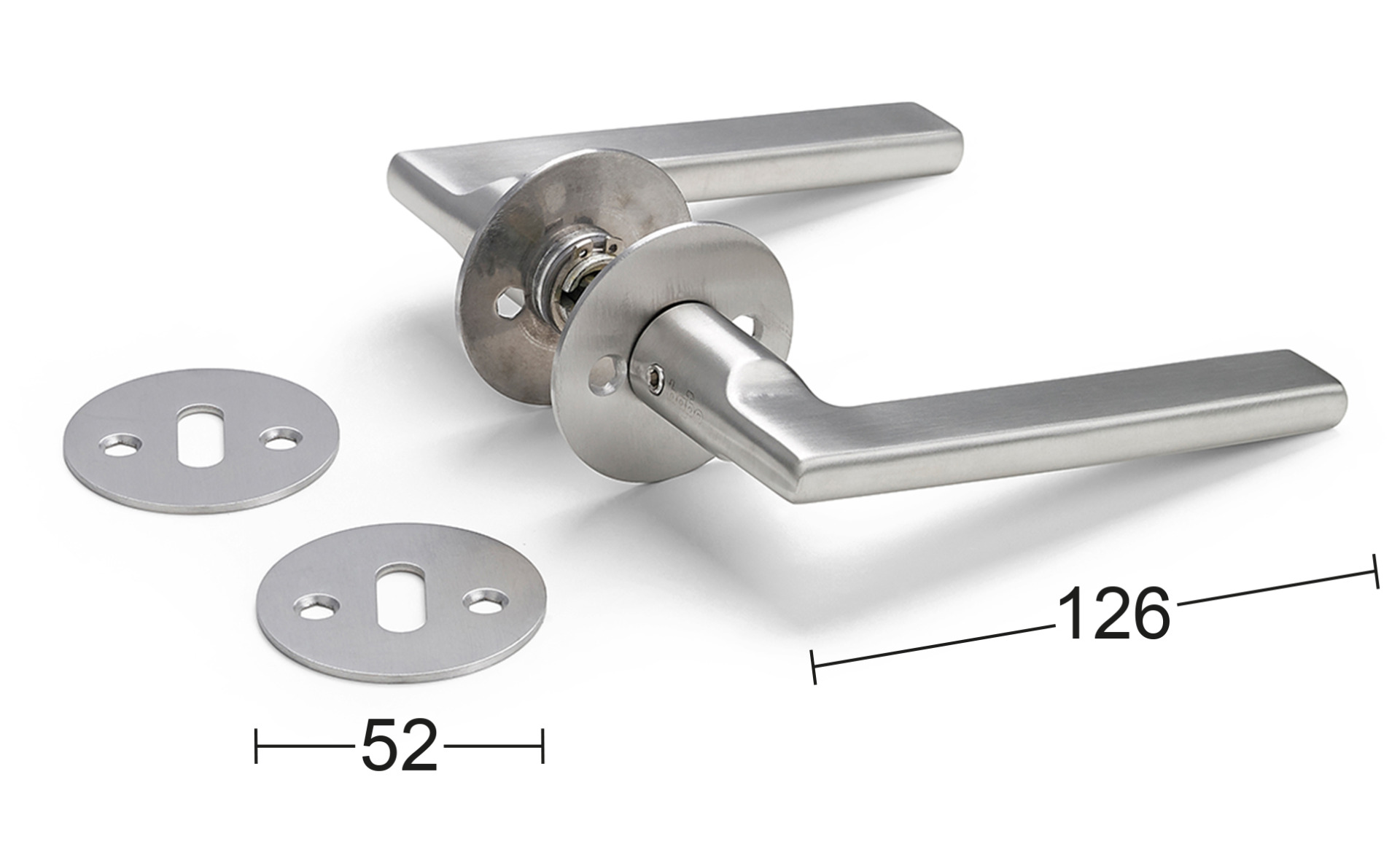 Väliovenpainike avainkilvellä ruostumattomasta teräksestä. Sopii 38-60 vahvuisiin oviin. Ulkonema 56 mm.